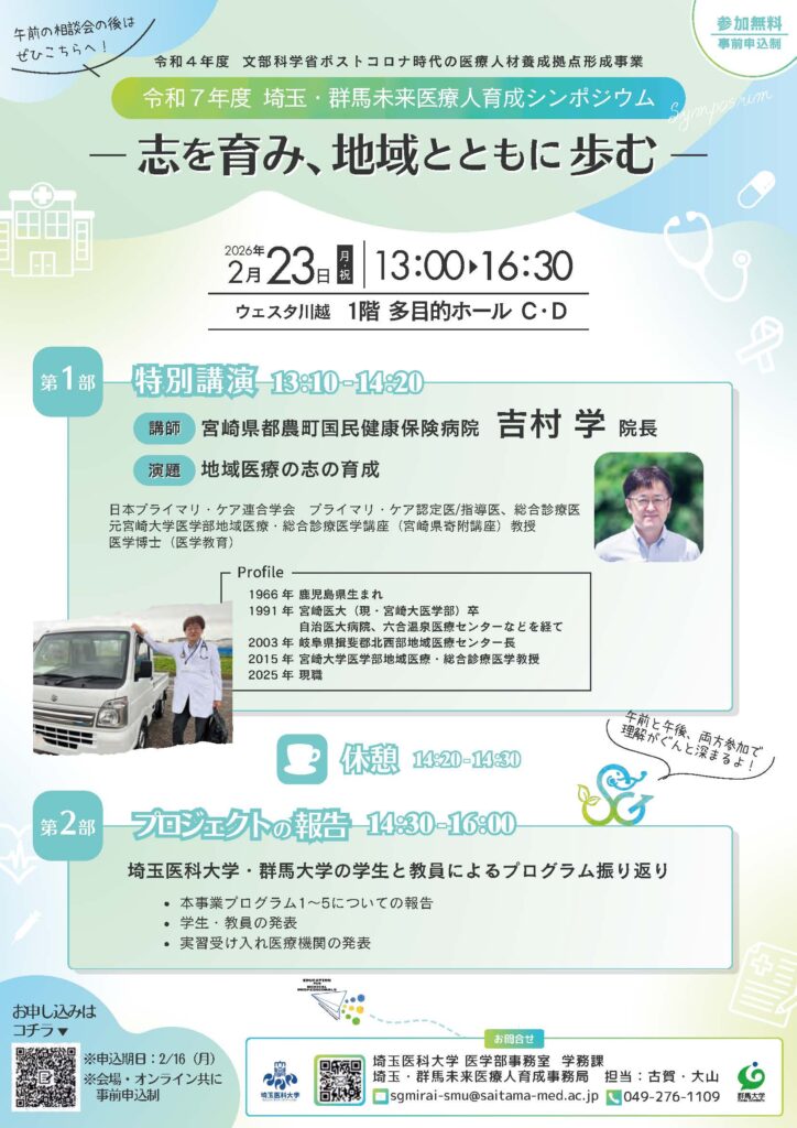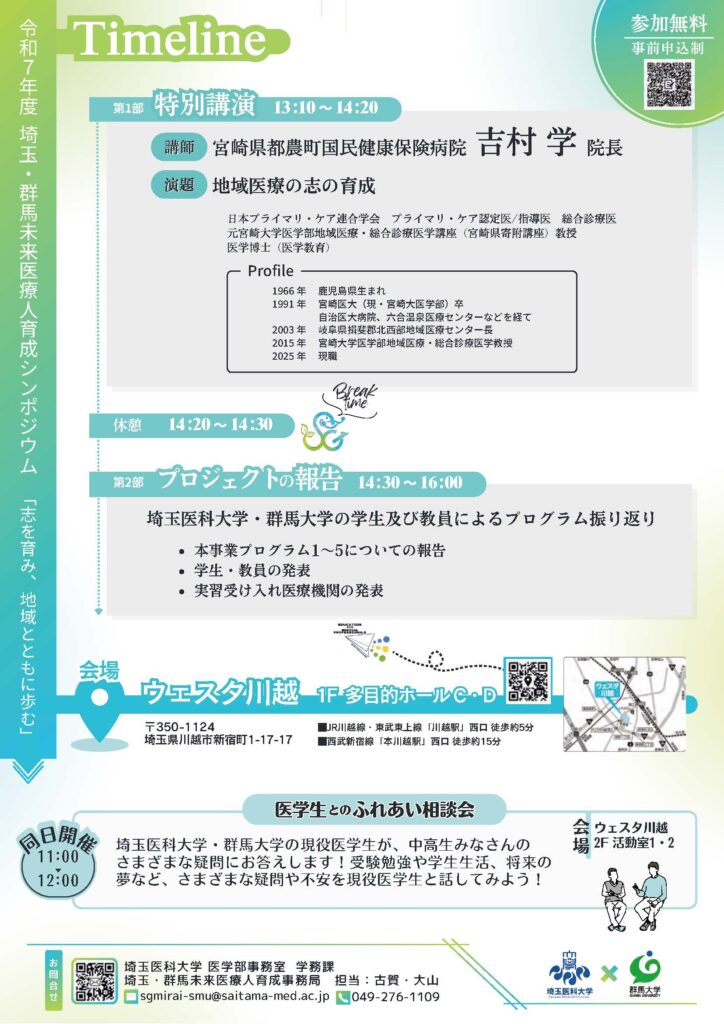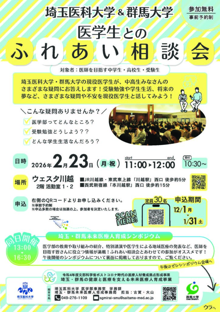 令和7年度埼玉・群馬未来医療人育成シンポジウムと医学生とのふれあい相談会を開催します